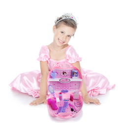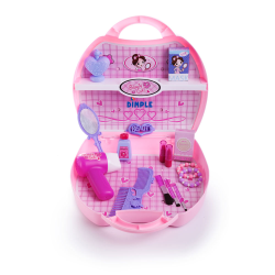 Bring out the princess! This twenty two piece beauty set has everything your little beauty queen needs! Featuring a pink hair dryer, purple mirror, purple comb, purple tiara, pink blush brush, two pink eye shadow brushes, two beaded bracelets – pink and purple, two play lipsticks, whitening cream, mask, purple pretend nail polish, purple beauty pin, and purple perfume bottle, as well as decorative stickers for the carry case! Portable imaginative fun! Your little princess will love pretending to be like mommy as she applies her pretend make-up! This great toy beauty set comes in a pretty pink easy tote travel case that acts as both a purse and makeup cabinet, so your little fashionista can take it with her anywhere she goes! Guaranteed Smiles! – 1 Year Warranty Dimple is a company that loves to please its customers and your purchase is secured with a 1 year comprehensive warranty! If for any reason you are not completely satisfied with this product, please contact a customer care representative right away so we can rectify the problem. Our customers are our number one priority! |