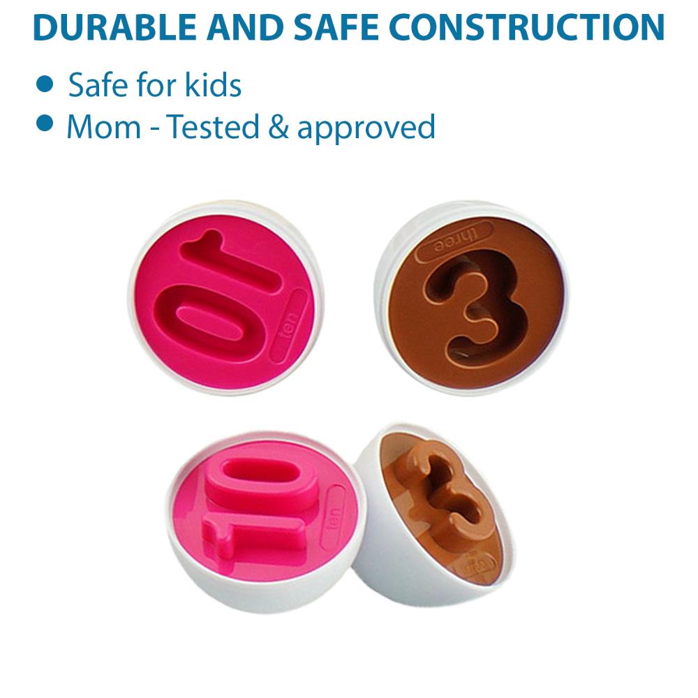 NUMBER RECOGNITION: Includes eggs with numbers 1-12. Help your children learn more about numbers, colors and basic math with this set of egg-shaped sensory toys for kids. Boost your children’s sensory skills – starting today!