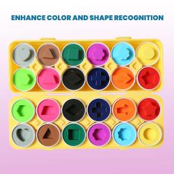 ENHANCE COLOR AND SHAPE RECOGNITION: Help your children learn more about colors, shapes, and how to tell them apart with a set of egg-shaped sensory toys for kids. Boost your children’s sensory skills – starting today!