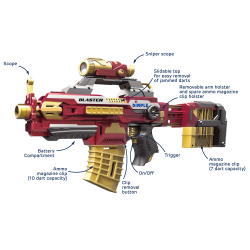 With 2 magazine clips (with a 6 dart and 10 dart capacity) a clip-on scope and an extendable body, this blaster is the perfect toy for any space. Find the perfect collection of parts you like and get to work having fun!