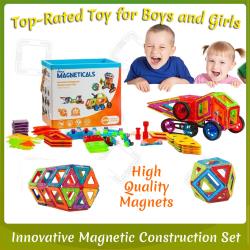 Choose Dimple Magneticals and let your child build towering castles, intricate homes, or something entirely original; they’ll love being creative! When you’re looking to give your child a fun, engaging way to keep your child learning and growing, there’s nothing more unique and innovative than the 98-Piece Magneticals Set from Dimple An innovative way to express creativity that traditional blocks simply can’t offer, these magnetic building block tiles let kids create 3-D structures and buildings that traditional square pieces could never allow! Kid Friendly Fun Complete safe and non-toxic, our Magneticals tiles use rare-Earth magnets to stick together easily and come in a wide range of shapes to let your child turn their imaginations into tangible designs. Great for expanding creativity, social confidence, and motor skills, get our 98-piece magnetic tile set today and bring on the fun! Product Details: