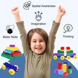 TONS OF OPTIONS: Little hands will love the block size and fun colors! Complete with a storage and carry bag for easy transportation, this is the ultimate set for little builders to create buildings, cars, houses, animals, and anything else they can imagine!