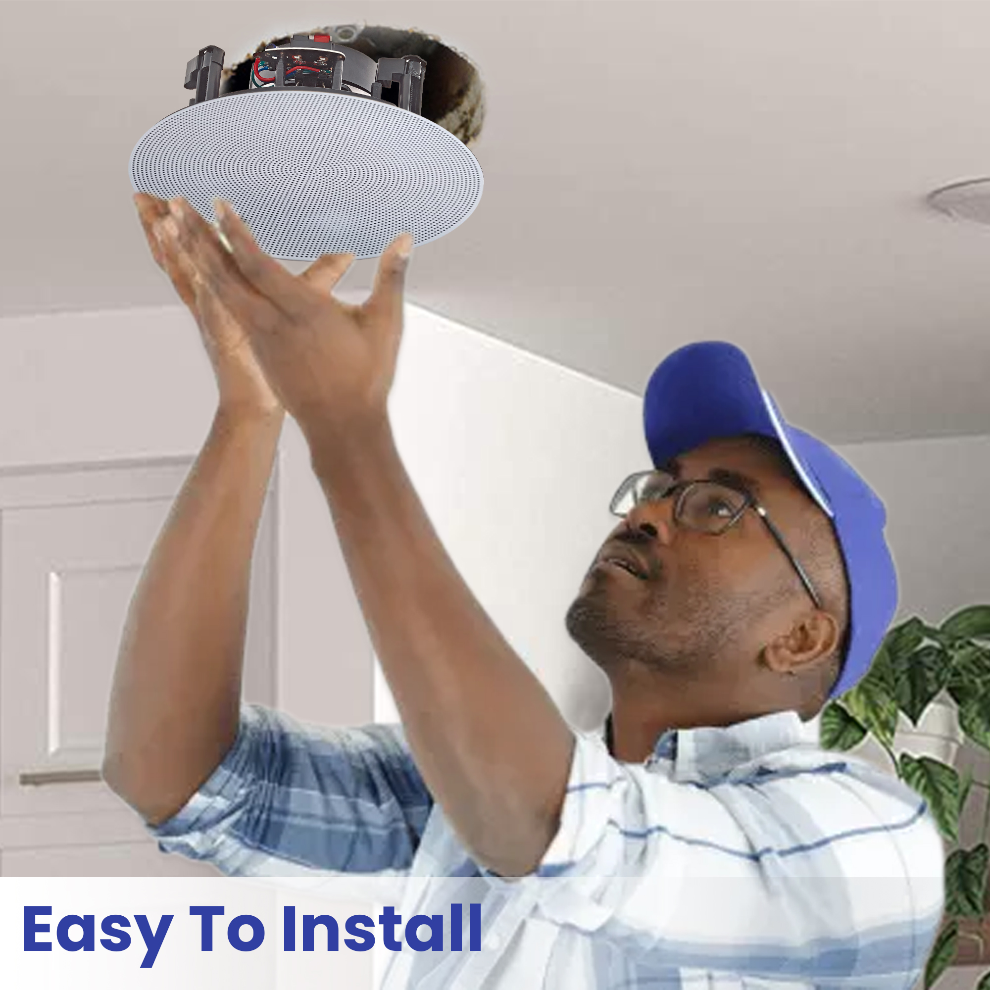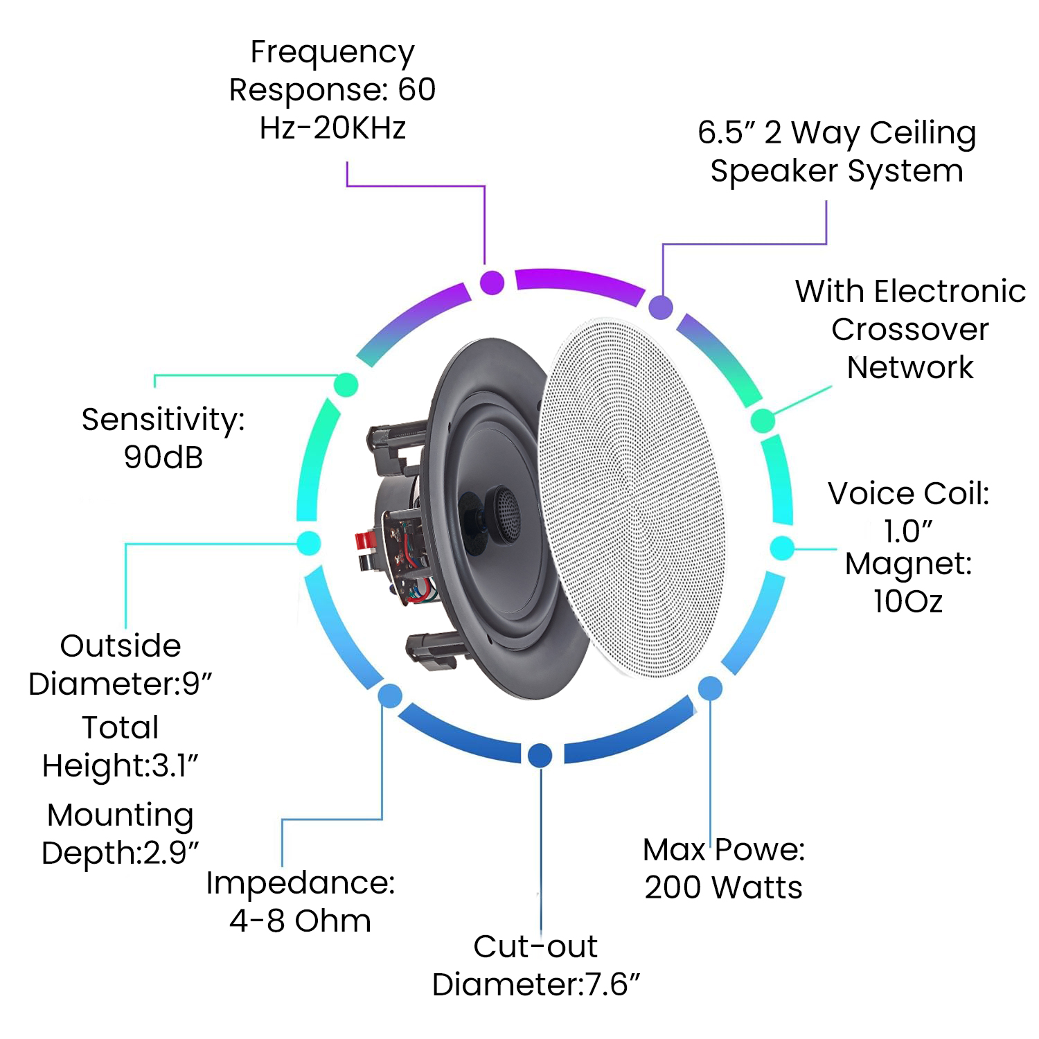 The VRICF650 speaker system delivers stereo sound to any room in your home or office without cluttering floor space. This pair of 6.5'' speakers can be used for in-wall and in-ceiling applications as they mount flush for a clean look. Perfect for custom installations, the speakers feature tweeters, impressive power handling capability, high-temperature voice coils and high-efficiency response rates – all to produce more full and rich sound. Convenient speaker terminals allow for quick and hassle-free speaker wire connection. System includes cut-out template for easy installation. Achieve wide-ranged sound performance and add audio to any room with the VRICF650 Speaker Systems.